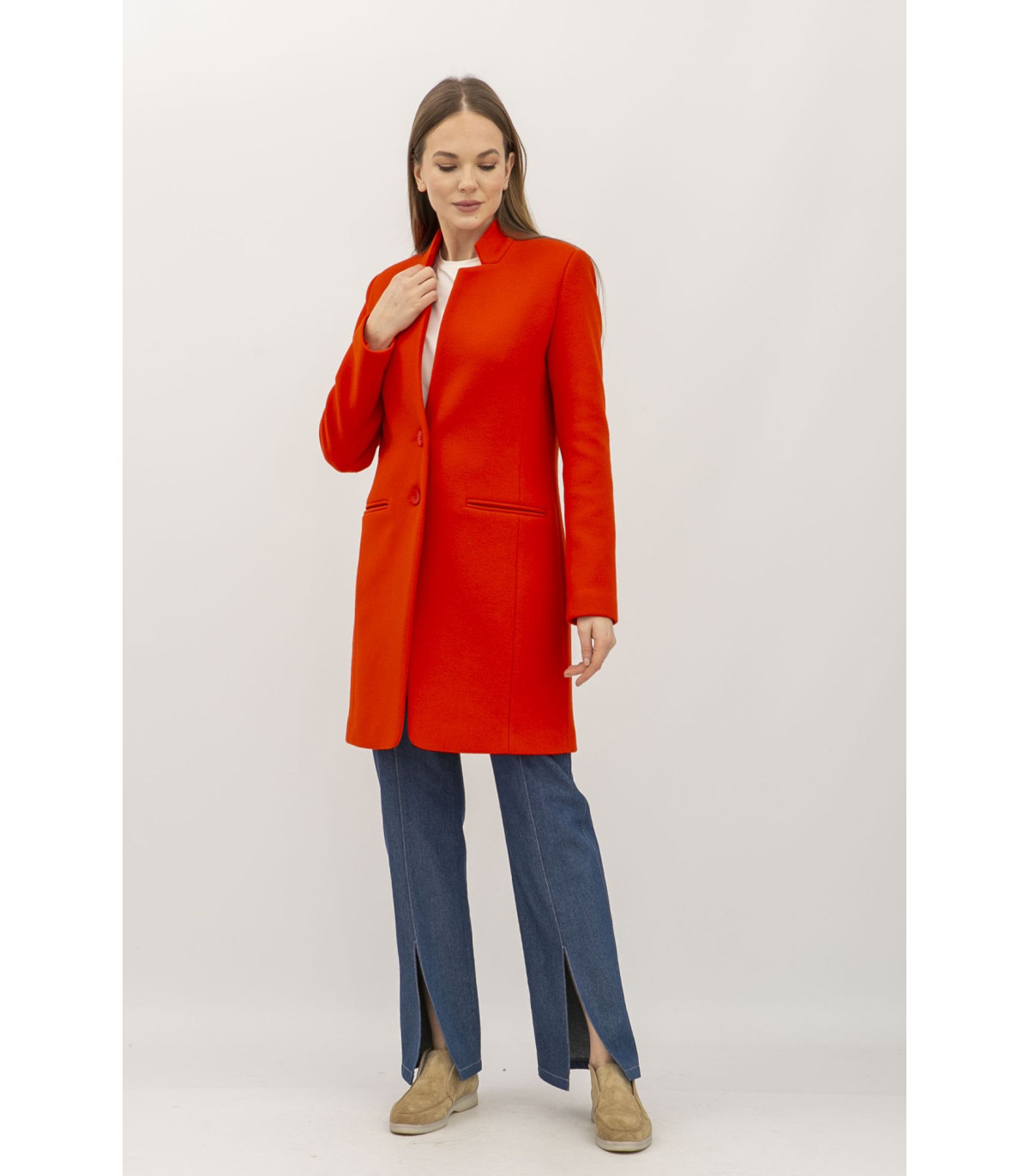 Классическое пальто кораллового цвета полуприлегающего силуэта Клера *LESIA* Артикул: 142940000 Деми**