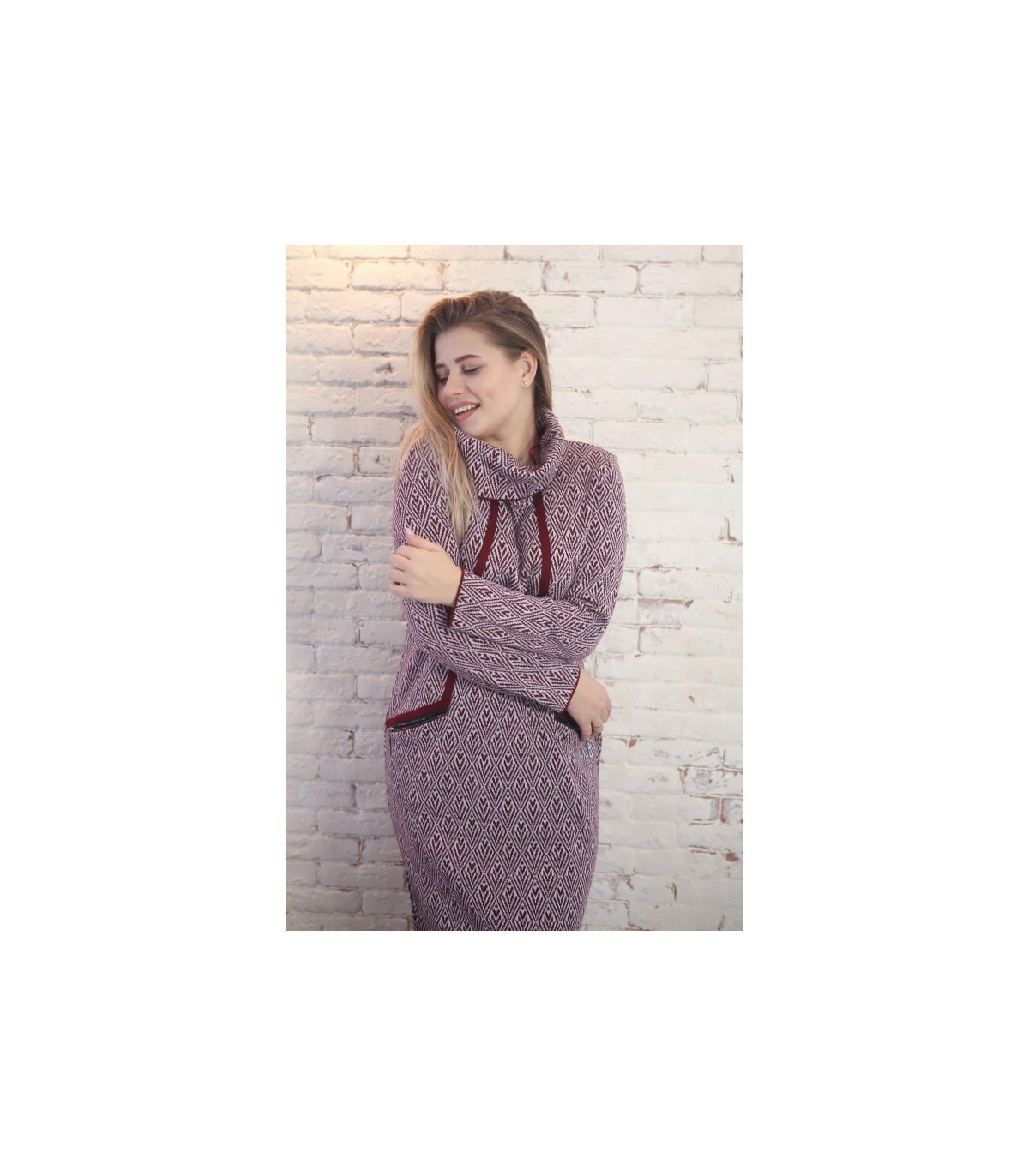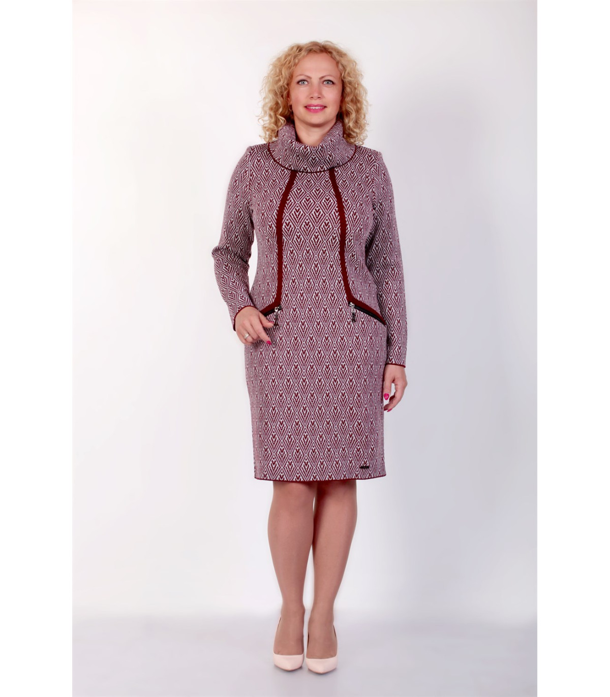 Жаккардовое платье из теплой полушерсти – идеальный вариант на холодное время года. Качественная пряжа мягкая и приятная на ощупь. Платье в деловом стиле красиво и утонченно подчеркнет женственный силуэт своей обладательницы.